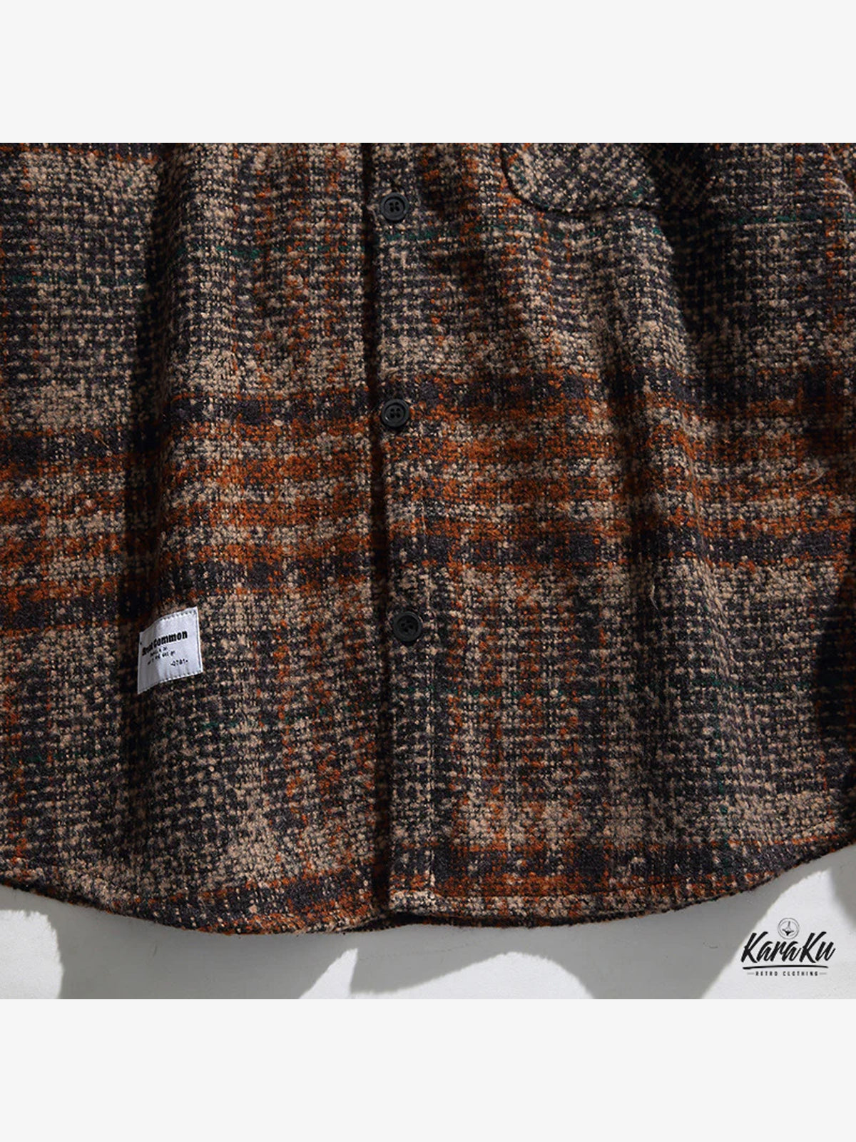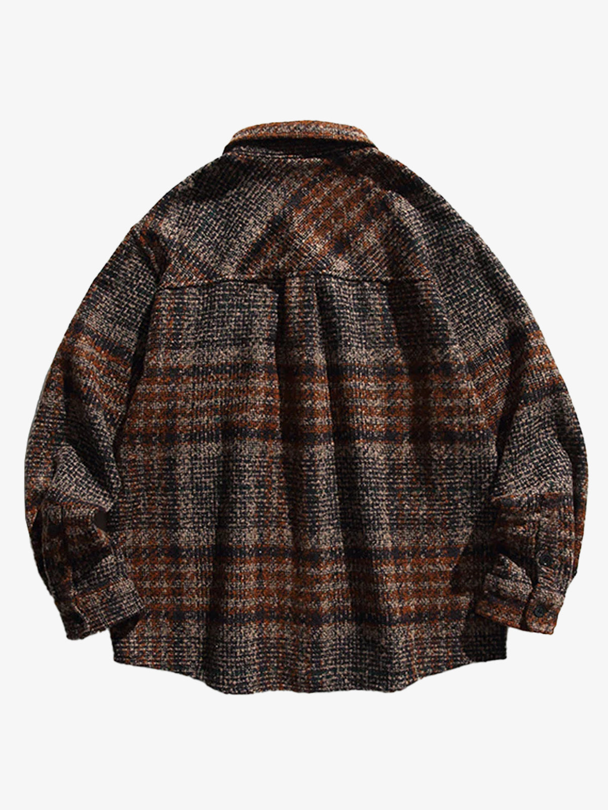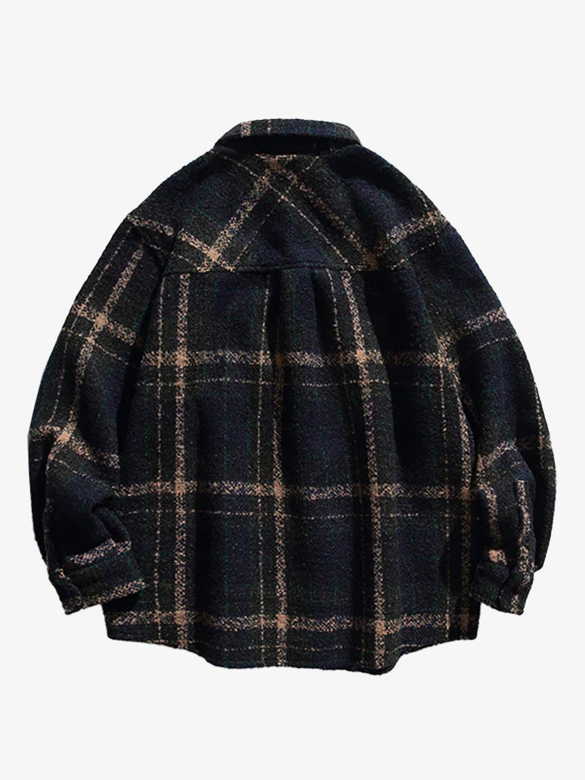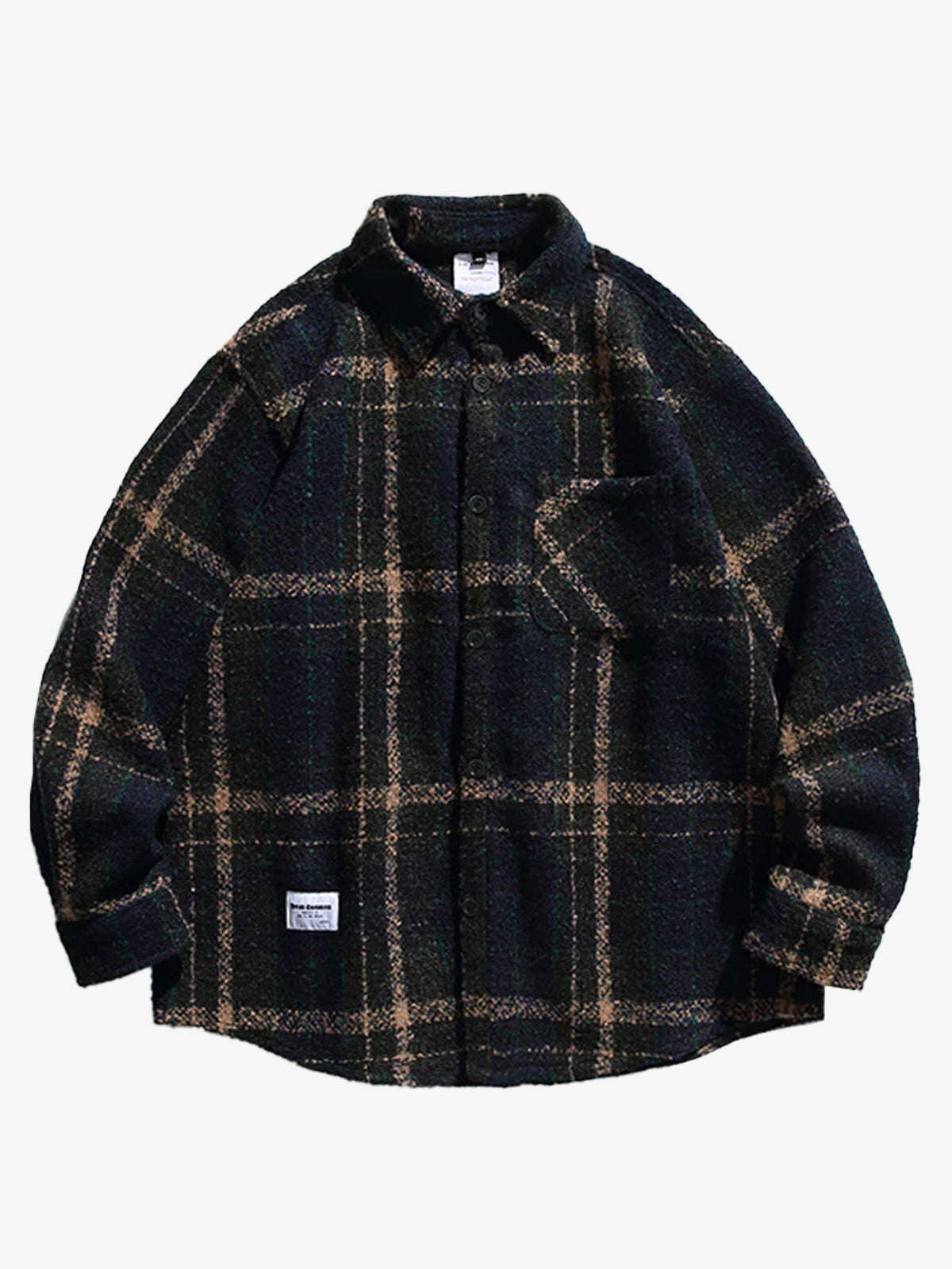 This long-sleeve shirt exudes retro charm with its classic tartan pattern, soft brushed texture, and corduroy-trimmed collar. The fabric is lightweight yet warm, offering a comfortable feel perfect for colder seasons. Featuring a curved hem, and its relaxed fit makes layering easy. Its timeless design also makes it a great choice for vintage-inspired events or seasonal outdoor gatherings.