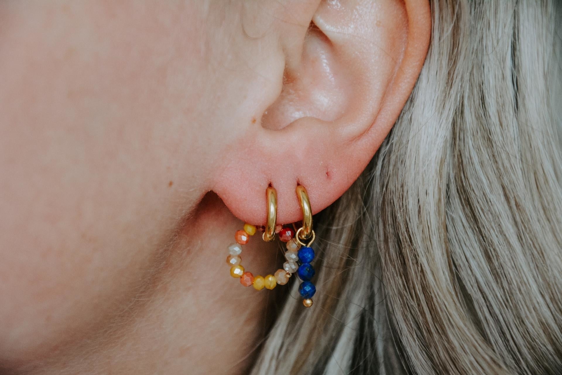 Match deze prachtige oorbelletjes bij een basic hoop of ander oorringetje en creëer wat kleur in je earparty. De oorbelletjes zijn van roestvrij staal. Verkocht als set van twee.