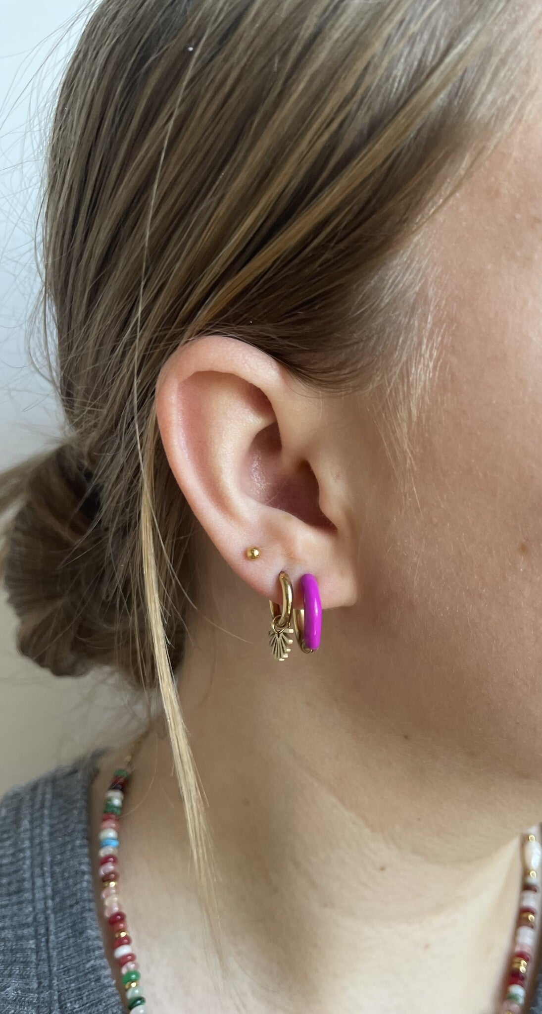 Geef jouw look wat extra kleur met deze vrolijke oorbelletjes verkrijgbaar in verschillende kleuren. De oorbellen zijn gemaakt van stainless steel en zijn 1.4 cm. Verkocht als set van twee.