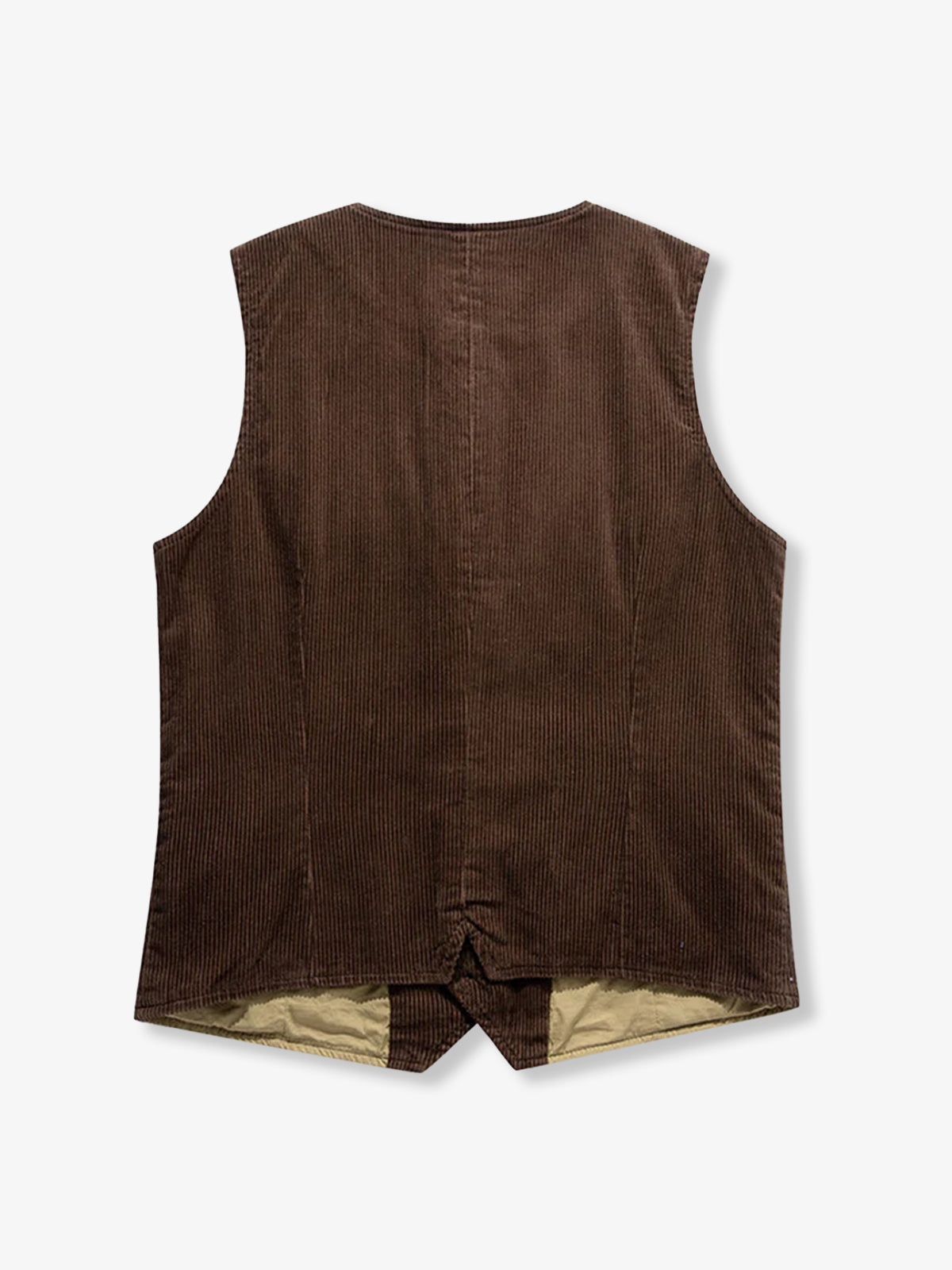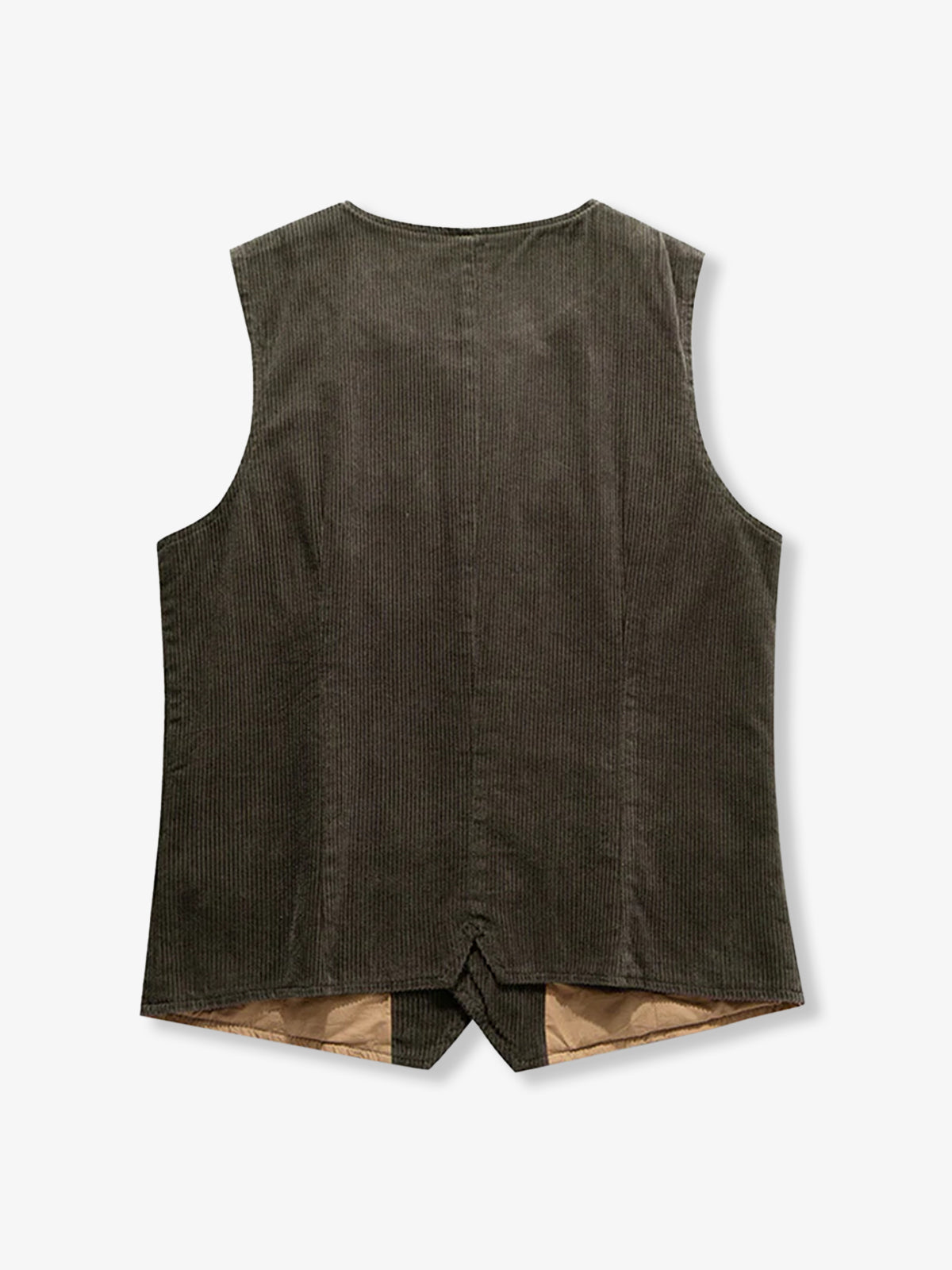 This vest revives the early 1960s silhouette with subtle adjustments to the neckline and shoulder line for a refined, vintage-inspired fit. Made from fine-wale corduroy, the fabric features tightly packed ridges that create a soft, velvety texture—reminiscent of velour. Over time, the material develops a worn-in patina with gentle fading and surface fuzz, enhancing its vintage charm. Designed for cooler seasons, its warmth and texture make it an ideal layering piece for fall and winter.