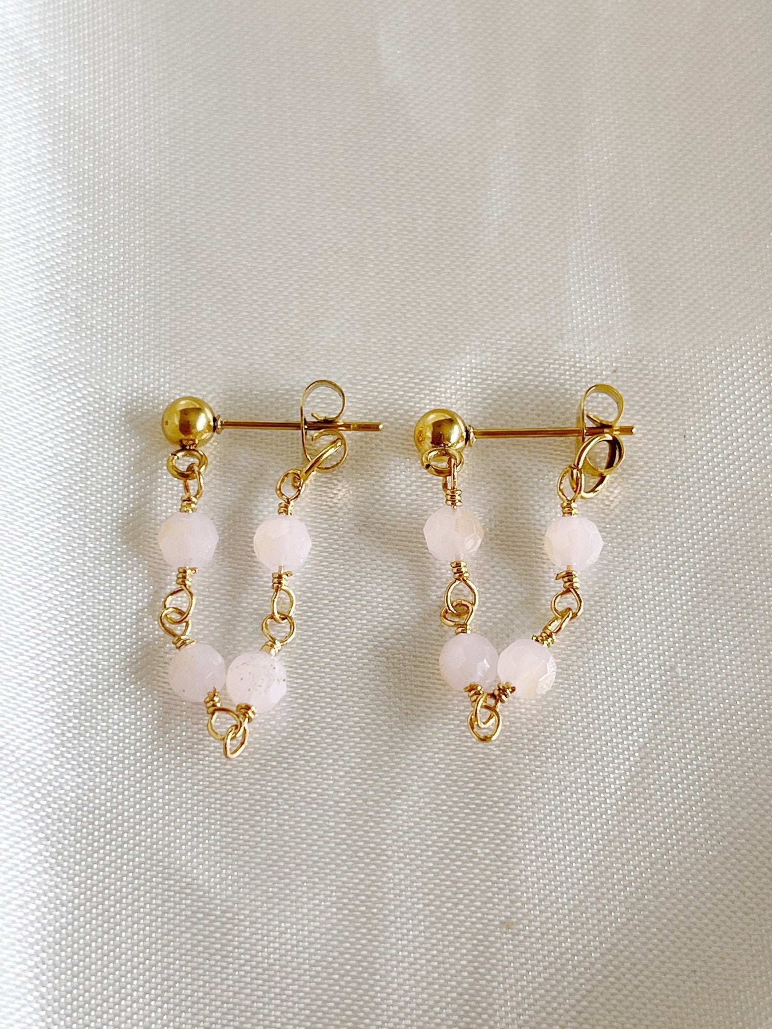 Prachtige oorbelletjes met kleine natuursteentjes en 'chain look'. De oorbelletjes zijn verkrijgbaar met verschillende kleuren natuursteen en prachtig te combineren met andere sieraden. De oorbellen zijn van roestvrij staal. Verkocht als set van twee.