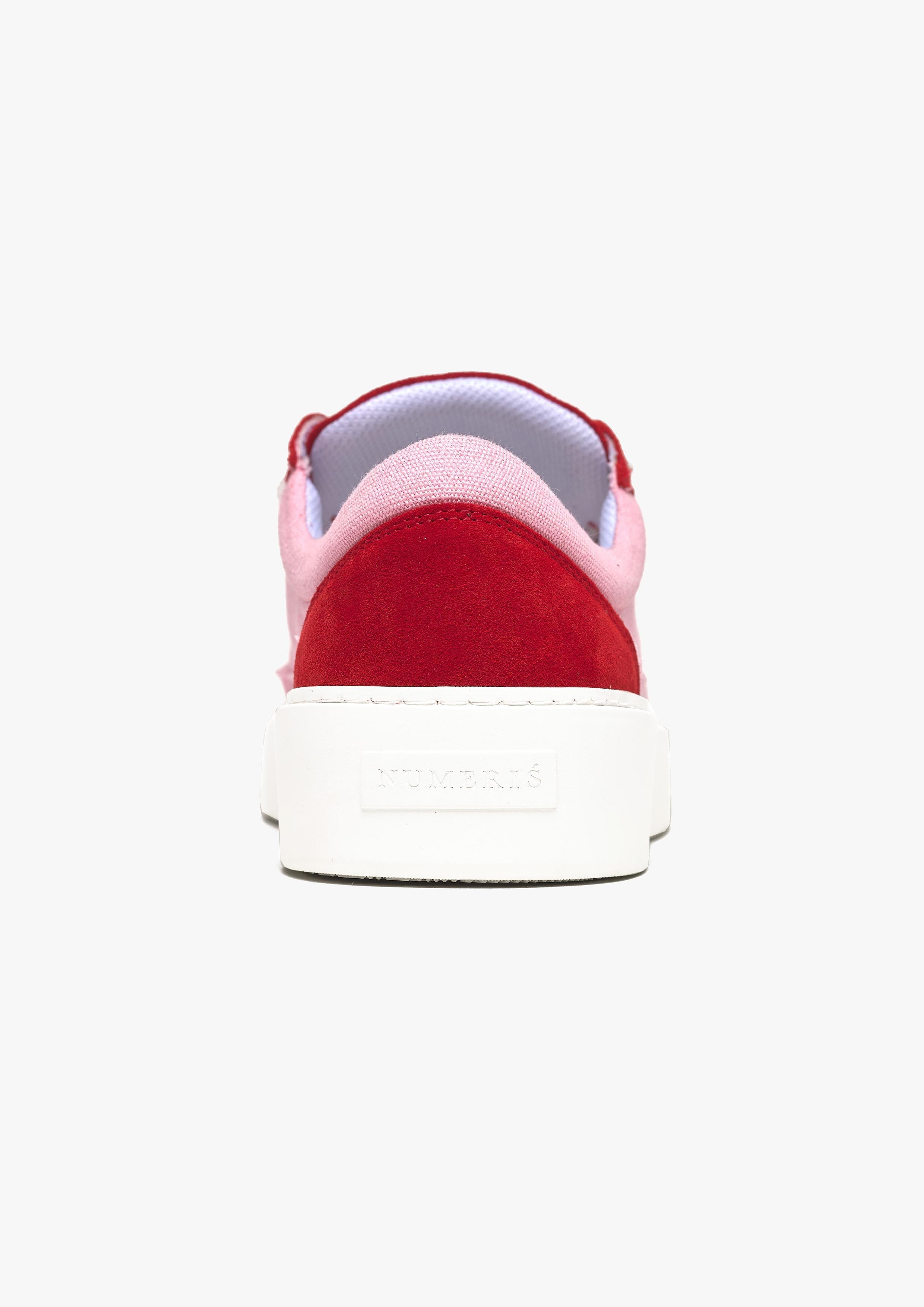 The Sigńet sneaker features a mix of Italian suede and Spanish canvas, 20mm fluffy white laces. Light pink canvas side panels which are accompanied by a rich red suede. The interior of the sneaker features white collar lining providing unrivalled comfort. The upper rests perfectly on top of our brand new complex rubber sole, exclusively made for Sigńet. Our distinct silver logo is positioned across the tongue.