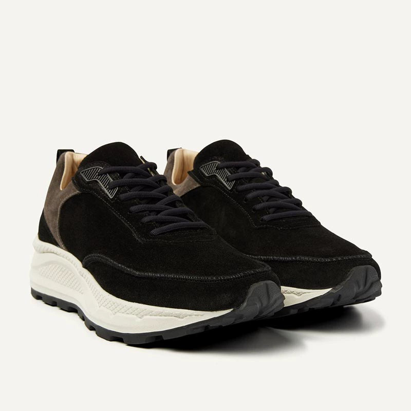 Merging sport and sophistication, the Reno Runner blends suede, matte leather, and mesh for a richly textured finish. Intricate piping details and a debossed logo on the tongue enhance its clean aesthetic. Grounded by a two-tone rubber outsole, this runner delivers both traction and visual impact. A soft mesh lining and memory foam-cushioned insole ensure all-day comfort. Suitable for whether you're hitting the streets or taking it slow.